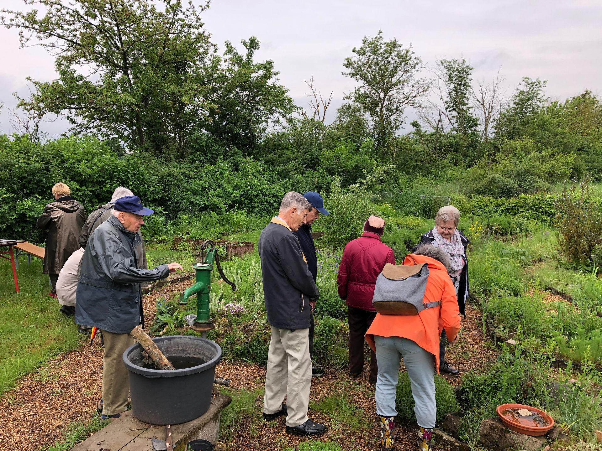 Am Freitag, den 12. Mai besuchten gegen 10 Uhr Mitglieder der Seniorenvertretung bei feuchter Witterung den NVB-Kräutergarten. Eva Müller führte die Gäste in den Bereich der Düfte, die jedoch aufgrund der Wetterlage rar waren. Natürlich gab es vereinzelt den Wunsch, Ableger mit in den „Heimischen Garten“ zu nehmen.