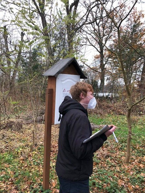 Am 25.11. besuchten uns Schüler*innen der Borngrabenschule in unserem Schutzgebiet im Schacht, um beim Kontrollieren und Reinigen der Nistkästen zu helfen. Nach einer kurzen Einführung über die unterschiedlichen Brutplätze und Nestformen, sowie dem richtigen Verhalten im Umgang mit Nistkästen, ging es direkt zum praktischen Teil.