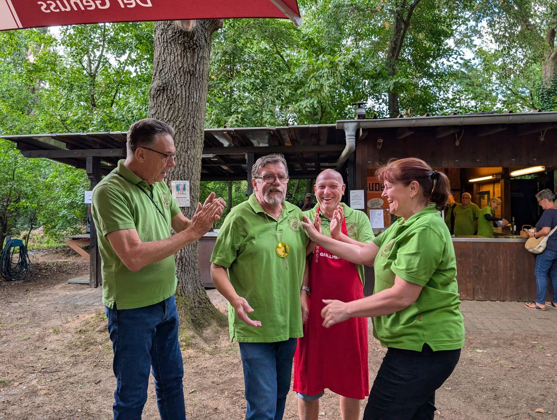 Sollten die an diesem Tag geltenden Corona-Regeln es zulassen, können sich die Besucher nach ihrem Spaziergang unterm „grünen Blätterdach“ vor der Schutzhütte des Vereins kühle Getränke und Bratwurst vom Grill im Brötchen, Kaffee und Kuchen vom Blech sich schmecken lassen.